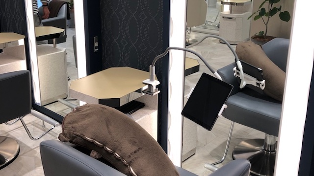 カットブースにはタブレットが設置されており、お客様は好きな映画、電子書籍、音楽などを楽しむことができます。