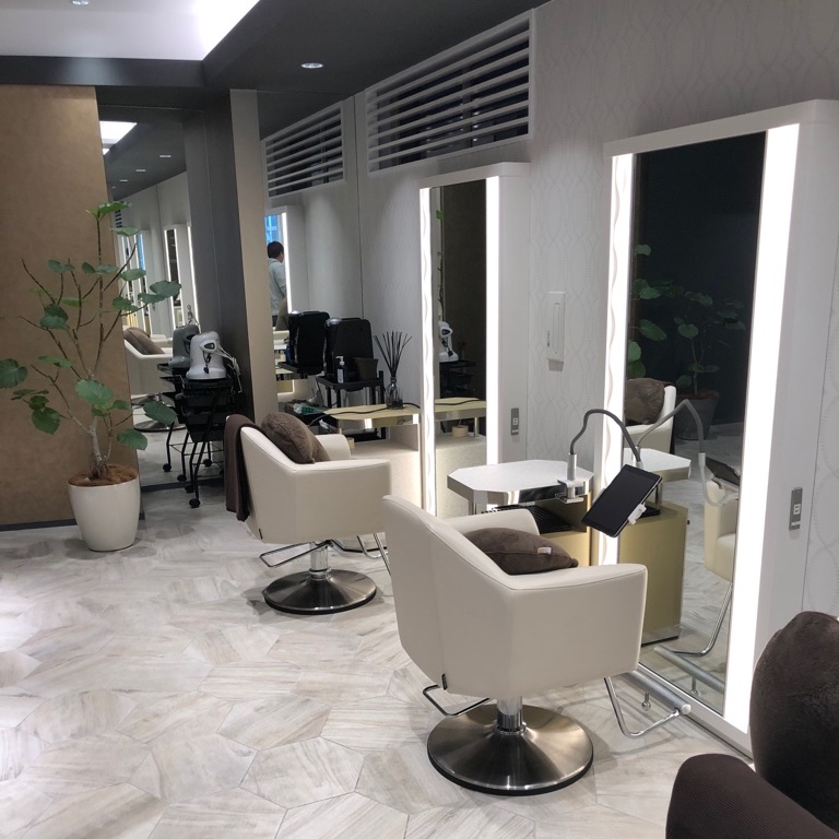 サロン内はゆったり落ち着いた雰囲気で、ゆったりとしたカット席です。タブレットで雑誌や映画もお楽しみいただけます。